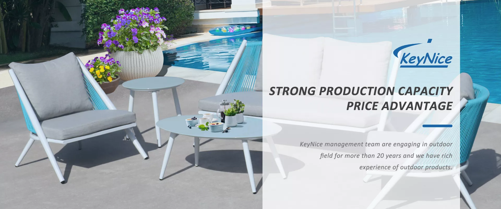 KeyNice has one subsidiary factory, named Huzhou Nanxun Tianhong Furniture Co.,Ltd., located in Huzhou City, Zheijiang province, 1.5 hours away from Shanghai. This factory is producing outdoor products, including PE rattan furniture, alu. furniture, rope furniture, hanging rattan chair, gazebo and so on.